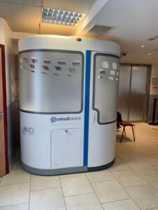 The H4D connected medical booth allows patients with chronic diseases (in particular patients with diabetes, heart conditions, or hypertension) who require regular monitoring with clinical examinations to have access to a telemedicine provider outside of traditional health treatment centers to maintain their continuity of care.